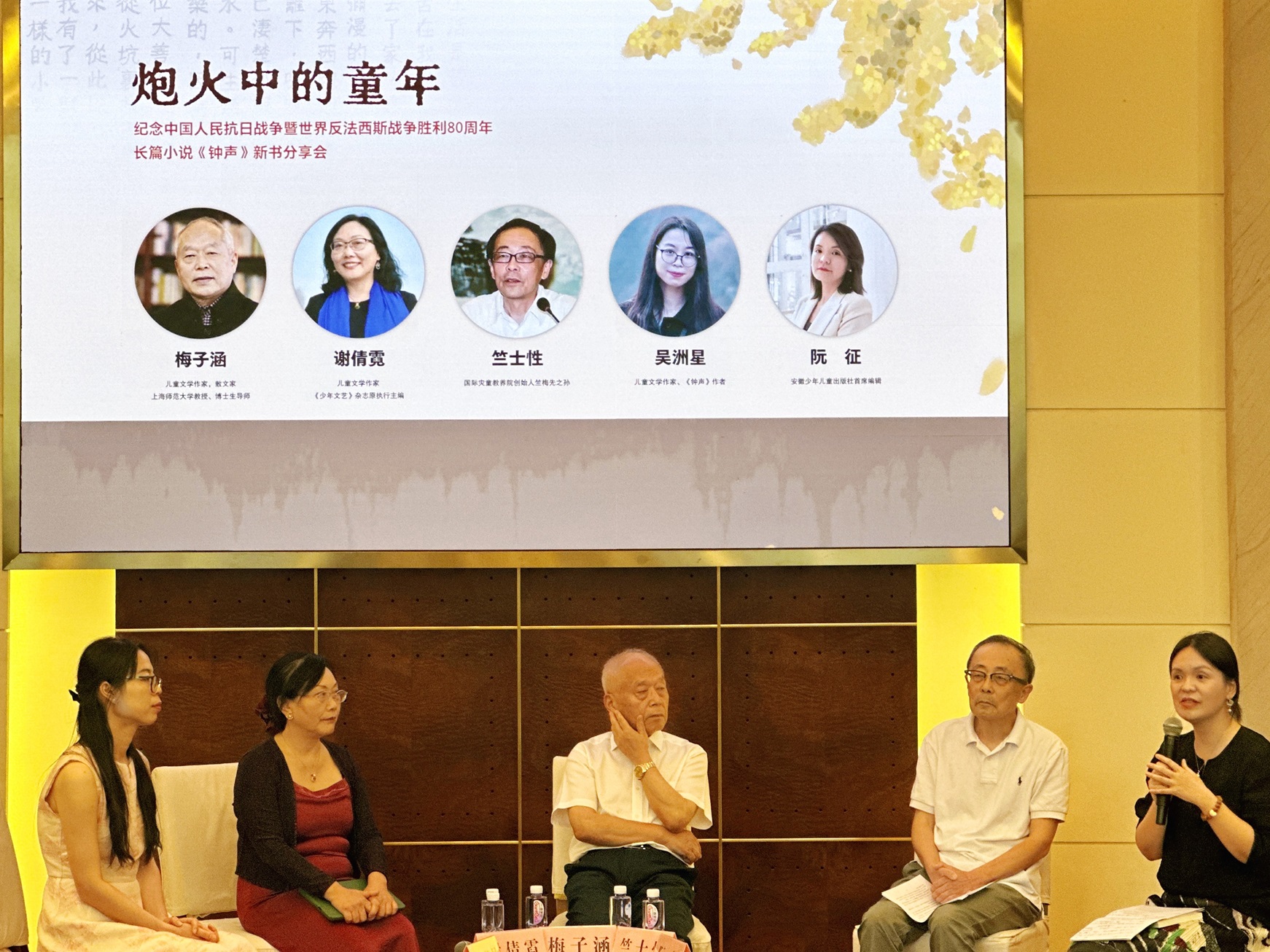 8月15日,為紀(jì)念中國(guó)人民抗日戰(zhàn)爭(zhēng)暨世界反法西斯戰(zhàn)爭(zhēng)勝利80周年,由安徽少年兒童出版社與寧波市文學(xué)藝術(shù)界聯(lián)合會(huì)聯(lián)合主辦的長(zhǎng)篇小說《鐘聲》新書分享會(huì),在上海書展期間舉行。