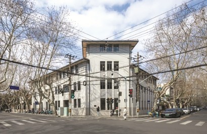 長(zhǎng)樂路富民路路口的梧桐濃蔭里,有一棟素凈簡(jiǎn)約的建筑——灰墻、木門、鋼窗,線條利落,若非有心留意,很難發(fā)現(xiàn)墻內(nèi)別有洞天。