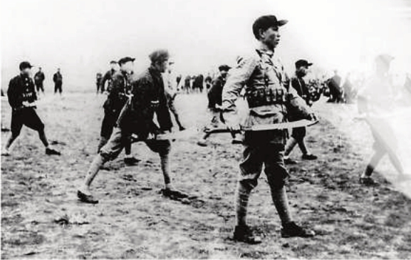 李堯臣除了教導大刀戰(zhàn)術外,還曾兩次在擂臺上把日本擂主打翻在地。其中一次是在1931年,一個日本武師在南京擺下擂臺比武,李堯臣聞訊后專程去南京打擂。日本武師連發(fā)三個大力拳,都被他輕巧閃過,同時他也摸清了對方的路數(shù),只一招白鶴亮翅,大喝一聲:“你下去吧!”猛起一拳挑中了對方下巴,對方便一個倒栽蔥跌下臺去。