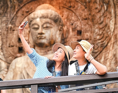 游客游覽龍門石窟,感受精美絕倫的石刻藝術,領略世界文化遺產的獨特魅力。