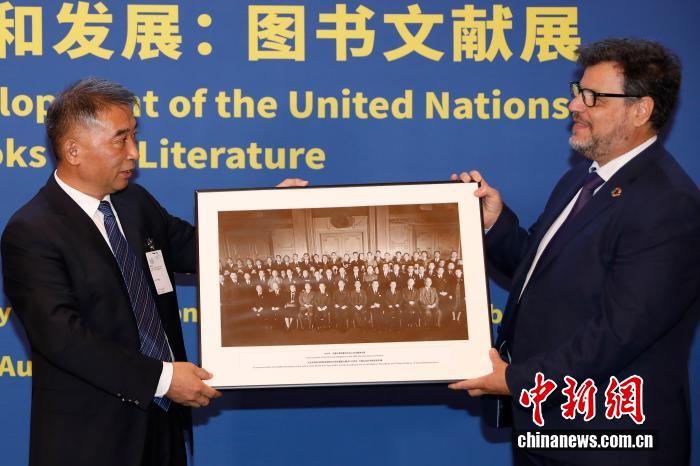 當(dāng)?shù)貢r(shí)間27日,紀(jì)念世界反法西斯戰(zhàn)爭勝利暨聯(lián)合國成立80周年圖書文獻(xiàn)展在紐約聯(lián)合國總部哈馬舍爾德圖書館舉行。