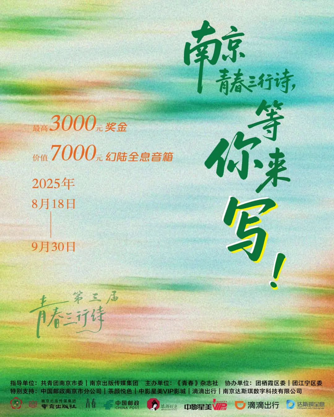 特別支持:中國(guó)郵政南京市分公司、茶顏悅色、中影星美VIP影城、滴滴出行、南京達(dá)斯琪數(shù)字科技有限公司