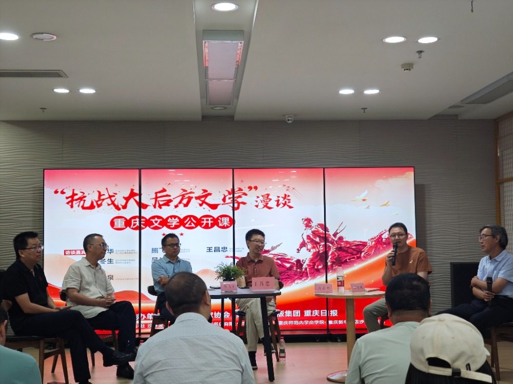 9月2日,由重慶市作家協(xié)會(huì)、重慶新華出版集團(tuán)、重慶日?qǐng)?bào)主辦的重慶文學(xué)公開(kāi)課之《“抗戰(zhàn)大后方文學(xué)”漫談》在沙坪壩書(shū)城舉行。以“抗戰(zhàn)大后方文學(xué)”為主題,本場(chǎng)活動(dòng)的嘉賓們——凌孟華、熊飛宇、王昌忠、付冬生、吳佳駿等專(zhuān)家學(xué)者和文學(xué)編輯,結(jié)合自身創(chuàng)作研究及工作實(shí)踐,講述了抗戰(zhàn)時(shí)期曹禺、茅盾、冰心等作家及相關(guān)文學(xué)社團(tuán)在重慶進(jìn)行的抗戰(zhàn)書(shū)寫(xiě),深入解讀了作家在特殊歷史背景下的創(chuàng)作動(dòng)機(jī)、家國(guó)情懷和民族氣節(jié),致力于讓塵封的文學(xué)記憶被更多公眾所知,助推偉大抗戰(zhàn)精神在當(dāng)代更好傳承。