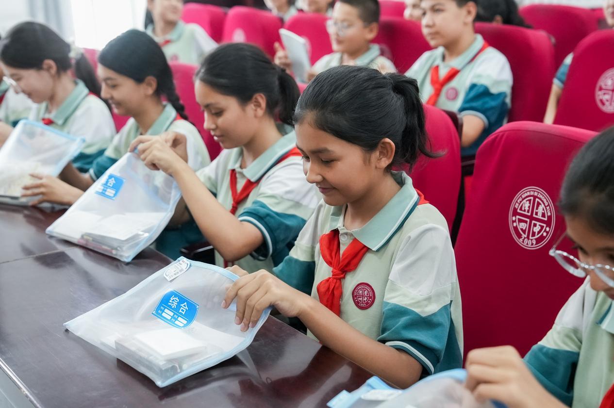 此外,采風團還為澤普縣第四中學的學生們精心挑選了“劍來”中性筆等各式各樣的文具用品,共捐贈超1000份文具包,為當?shù)貙W生送上了實實在在的“學習禮包”,鼓勵孩子們執(zhí)夢想之筆,以奮斗書寫未來。