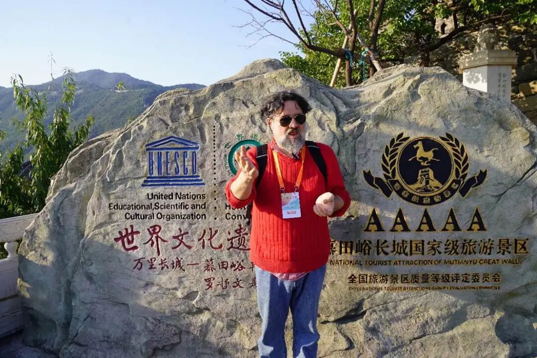 傍晚漫步慕田峪,夕照將整段長城點染成金色,遠處層層疊疊的松濤和近處烽火臺的剪影一同激活了史詩的聲音。身臨此地,阿根廷詩人馬克西米利亞諾·萊尼亞尼心中激蕩著難以自抑的澎湃情感。他說,長城是他窮盡一生夢寐以求的少數(shù)幾個地方之一,自收到中國之行的邀請函起,他便不斷追問這個抵達長城的夢想何時能成為現(xiàn)實。而今,夢想終于成真,馬克西米利亞諾·萊尼亞尼感受到了這片土地上散發(fā)的能量、呼吸的歷史,他認為,這完全詮釋了“史詩”的真諦——“人類歷史上所有史詩創(chuàng)作都以此為源泉。此刻我們既能追思中國詩人的瑰麗詩篇,也能遙想阿根廷詩人書寫東方傳奇的壯美文字?!痹陂L城上,馬克西米利亞諾·萊尼亞尼和中外詩人們從荷馬史詩聊到博爾赫斯,尤其是后者,這位被拉美、中國乃至全世界作家反復引述的文學巨匠,正是他最早用中華文明的史詩意境與源遠流長的神秘魅力,為阿根廷讀者開啟了認知的窗扉?!敖袢眨医K于得以親身體驗這份傳奇?!瘪R克西米利亞諾·萊尼亞尼說道。