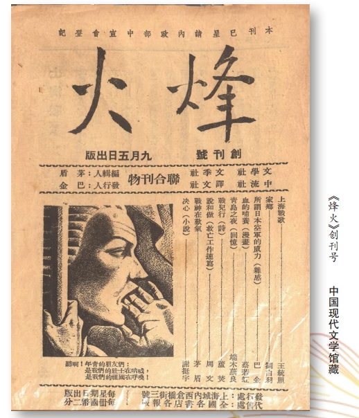 在這一年多的短暫時光里,《烽火》刊登了大量反映抗戰(zhàn)現(xiàn)實、鼓舞民眾士氣的優(yōu)秀作品。它的作者隊伍包含茅盾、巴金、靳以、蕭乾、黃源、唐弢、郭沫若、郁達夫、劉白羽、駱賓基、葉圣陶、豐子愷等近百位中國現(xiàn)代文學和藝術(shù)史上的重要人物。他們用文學藝術(shù)記錄戰(zhàn)爭的苦難、揭露敵人的罪行,也歌頌了軍民抗戰(zhàn)的英勇無畏,為中國人民構(gòu)筑起了一道無形的精神堡壘。在近百年前那個戰(zhàn)火紛飛的年代,《烽火》不僅成為中國文壇在抗戰(zhàn)初期的重要旗幟,以文學和藝術(shù)為媒介,深刻反映了特殊時代民眾的苦難、掙扎與不屈,更為全民族抗戰(zhàn)注入了強勁的文化動力,留下了深遠的精神遺產(chǎn)。