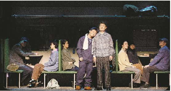 在舞臺上濃縮時光、提煉時代精神是一件困難卻又必須要完成好的創(chuàng)作任務。如何從娓娓道來的長篇敘事中,提煉出舞臺故事的精髓?在對《南來北往》的改編中,我們選取列車與小院作為核心敘事空間,由劇中人作為講述者,還原時光鏈條中人物命運的關鍵段落,突出不同時空人物的在場性。舞臺上的每一個人物都在共同經歷著時光的洗滌,推動講述者和傾聽者之間的關系變化。在人物命運背后,時代的發(fā)展也恰如列車不斷前行,一段段記憶中的情感奔涌,時而靜水深流,時而浪濤翻滾。而如何寫好群像中的師徒情、父子情,以及始終閃耀的理想之光和時代浪潮中的人生百味,則是我們要著力思考的部分。