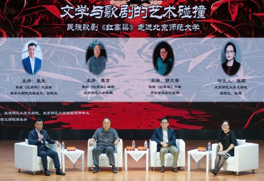9月19日晚,國家大劇院“經(jīng)典藝術(shù)講堂”攜手歌劇《紅高粱》主創(chuàng)來到北京師范大學(xué)。國家大劇院黨組成員、副院長、歌劇《紅高粱》總監(jiān)制張堯,歌劇《紅高粱》作曲郭文景,編劇莫言與北京師范大學(xué)文學(xué)院副院長張莉進(jìn)行了深入對談,與北京師范大學(xué)文學(xué)院的師生們共同探討歌劇《紅高粱》的制作緣由與改編特色,以及如何在文藝創(chuàng)作中講好中國故事、感受民族精神。