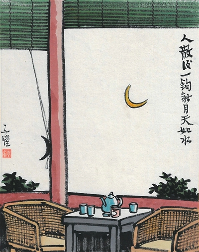 人散后,一鉤新月天如水(中國畫)
