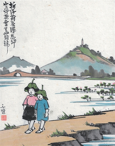 折得荷花渾忘卻 空將荷葉蓋頭歸(中國畫)