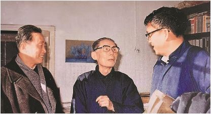 1982年,夏衍(中)與電影導(dǎo)演謝晉(右)、上海電影制片廠廠長(zhǎng)徐桑楚(左)在一起討論劇本