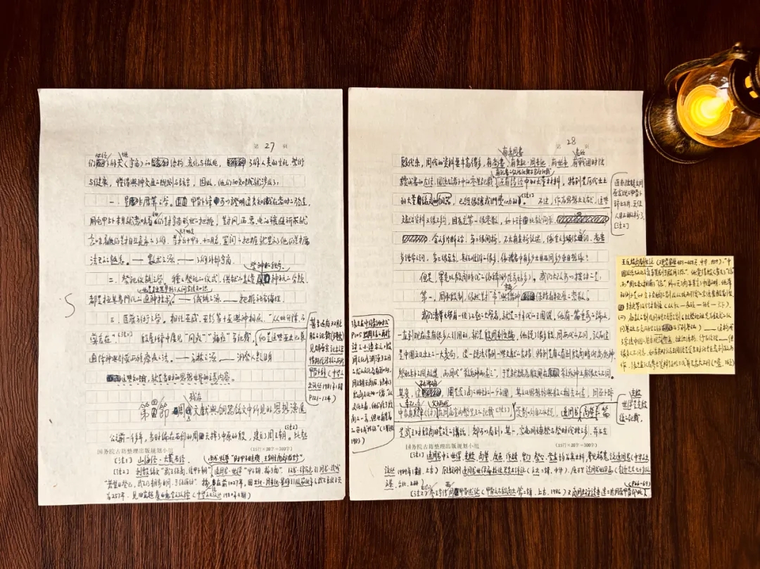 在動(dòng)筆寫講義之前,我翻過好多中國(guó)思想史著作,從大部頭的侯外廬,到薄薄的常乃惪,從只講古代的楊榮國(guó),到專講當(dāng)代的郭湛波,從德國(guó)的佛克(Alfred Forke),到日本的武內(nèi)義雄,當(dāng)然,也包括各種不叫思想史而叫哲學(xué)史的書,從胡適、馮友蘭到任繼愈??晌覍?duì)這些著作都不太滿意,覺得不能拿這些書當(dāng)現(xiàn)成教材,只好自己從頭寫,往往是一邊寫一邊講,有時(shí)甚至前一天才寫好講稿,第二天就拿到課堂給學(xué)生講。那時(shí)候還年輕,又正值小平南方談話,各種新知也漸漸冒頭,所以寫的時(shí)候和講的時(shí)候,不斷會(huì)有新想法涌現(xiàn)。寫好就講,講完再改,講稿上貼滿各色貼紙,無論在形式上、資料上以及觀念上,離當(dāng)時(shí)各種中國(guó)思想史或哲學(xué)史就越來越遠(yuǎn)。
