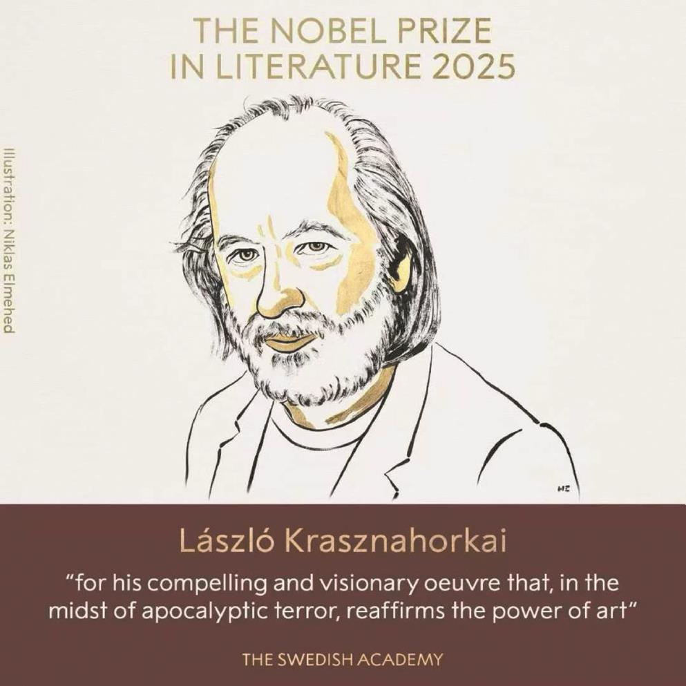 “他那震撼人心、富有遠見的創(chuàng)作,在災難與恐懼中,重申了藝術的力量。”北京時間10月9日晚,2025諾貝爾文學獎在瑞典斯德哥爾摩揭曉,71歲匈牙利作家拉斯洛·克拉斯納霍爾凱獲獎。