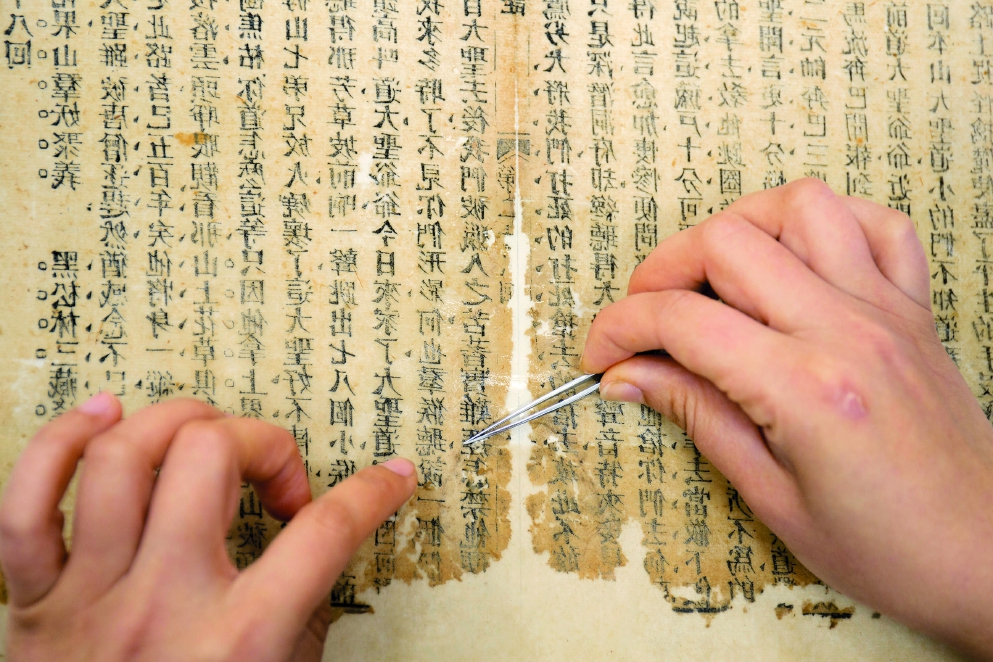 書中用大量筆墨描繪了星光熠熠的修復(fù)師群像。除了潘美娣、杜偉生,還有傳拓大師馬國慶,他能將西湖的晴、雨、霧、煙波之色,融于墨色的輕重、明暗、虛實(shí)之中;有對(duì)她影響至深的導(dǎo)師胡玉清,手把手教她如何在絮化如棉胎的《唐詩拾遺》上拼湊出指甲蓋大小的殘片,并灌輸“修合無人見,存心有天知”的職業(yè)信念;還有已故的趙嘉福先生等老一輩大師,他們將畢生絕學(xué)傾囊相授。這些事例,讓我們看到一項(xiàng)古老技藝是如何在師徒相授、口傳心授中得以薪火相傳。