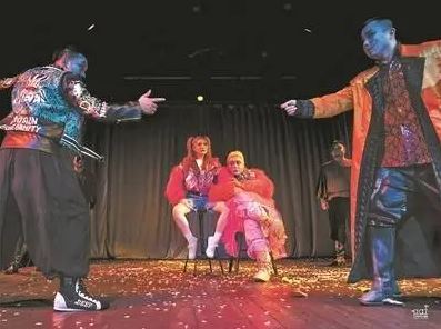 說到連接現(xiàn)實(shí),就不得不提到《羅吉》的戲中戲設(shè)計(jì)。劇中的伶人戲班不再如《哈姆雷特》原著中那樣,僅僅演出了用于試探新王的《捕鼠器》。他們靠表演謀生,“什么掙錢就演什么”;他們把“鮮血、愛情和死亡”當(dāng)作賣點(diǎn),所有的表演都是為了滿足觀眾的獵奇心理與感官需求。舞臺(tái)上濃妝艷抹、奇裝異服、表演低俗的伶人戲班,與戲劇家格洛托夫斯基曾經(jīng)批判的演員別無二致——他們的身體僅僅是獲利的工具,他們的表演也是虛假的技巧堆砌。