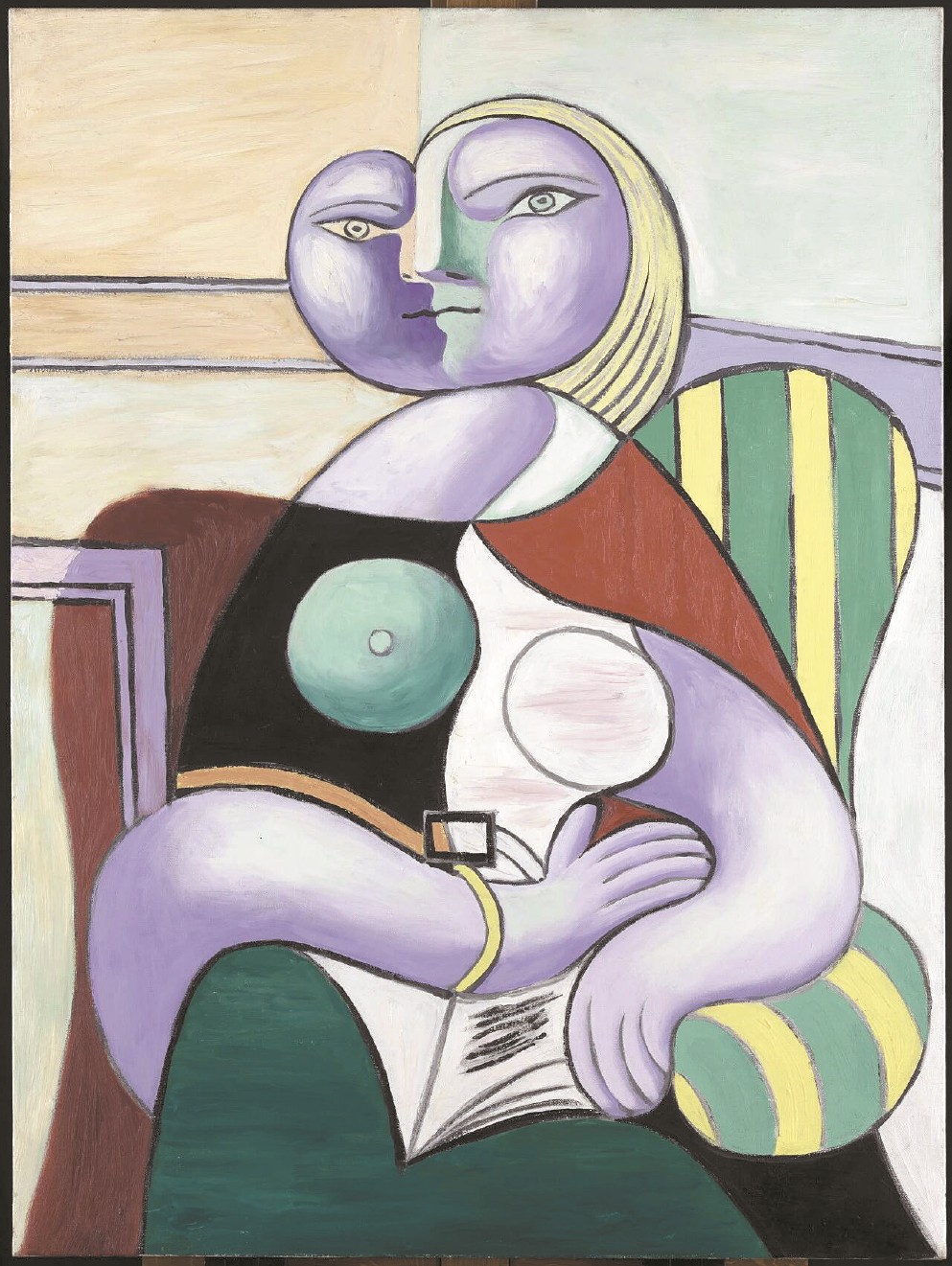 畢加索以其最知名的伴侶之一瑪麗-特雷莎·瓦爾特為模特創(chuàng)作的《閱讀》。(主辦方供圖)