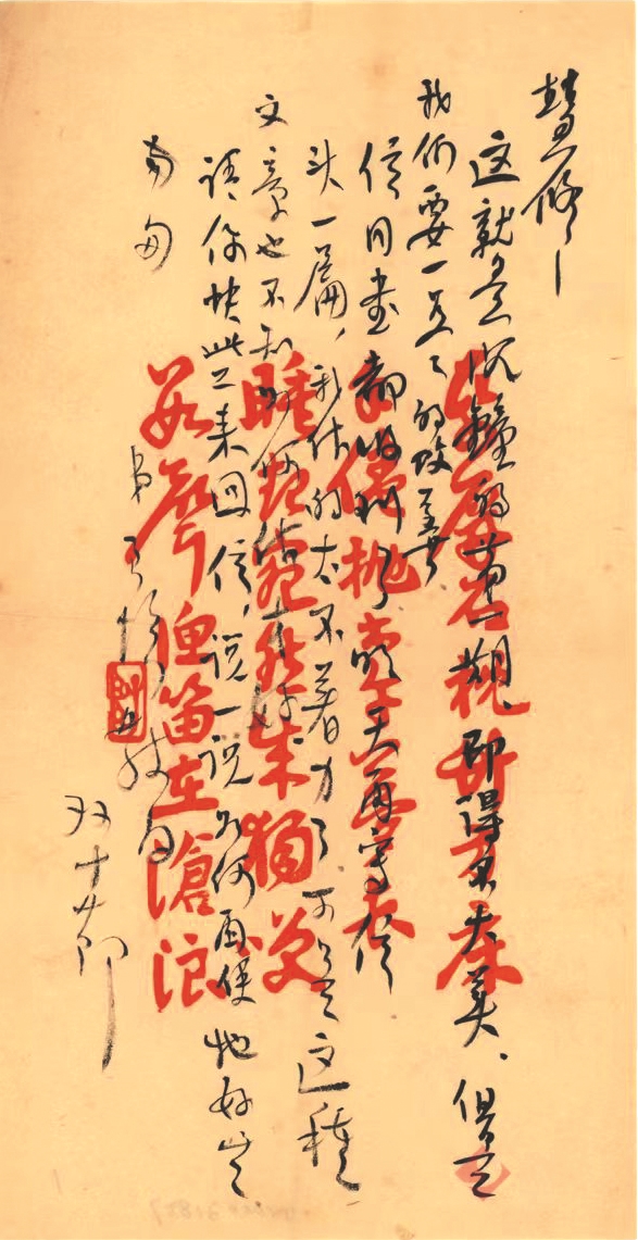 1925年10月10日,馮至(字君培)致信楊晦(字慧修)。書信內(nèi)容簡短,僅103個(gè)字,墨筆行書從右向左豎行寫于彩箋之上。書信開頭便直奔主題:“這就是沉鐘的第一期”?!俺羚姟奔础冻羚姟分芸?,1925年10月10日出版??锍霭娈?dāng)天,馮至便寫信告訴楊晦出版情況,并給他郵寄了期刊。