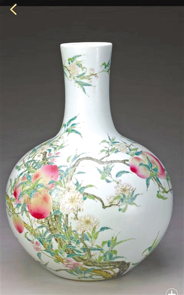 乾隆款粉彩九桃圖天球瓶 清