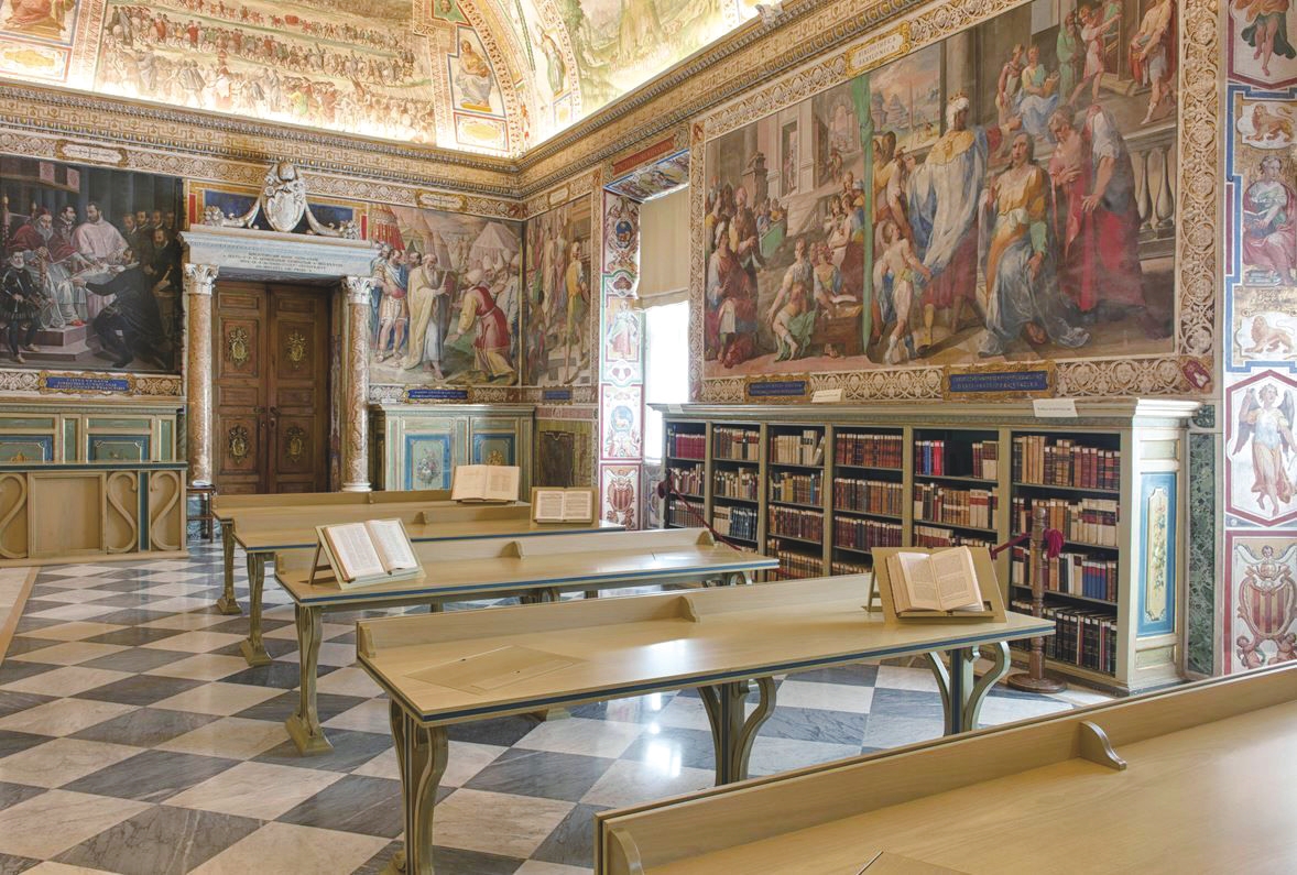 梵蒂岡是世界上國土面積最小的國家,梵蒂岡圖書館(Biblioteca Apostol-ica Vaticana)卻是世界最重要的人文科學學術圖書館之一。梵蒂岡圖書館的前身為僅供教宗和教廷內(nèi)部使用的私人藏書室。約在1450年,教皇尼古拉五世決定將其對外開放,并任命首位館長。目前其藏品包括8萬余種不同文字的寫本,160萬冊紙質(zhì)書籍(包括最早采用古登堡印刷術印行的“搖籃本”約8700部),此外還有硬幣、版畫、繪畫、照片等。其中中文藏品約7000種,1911年之前刊印抄寫的古籍有約2000種,是歐洲收藏中文古籍最多的圖書館之一。