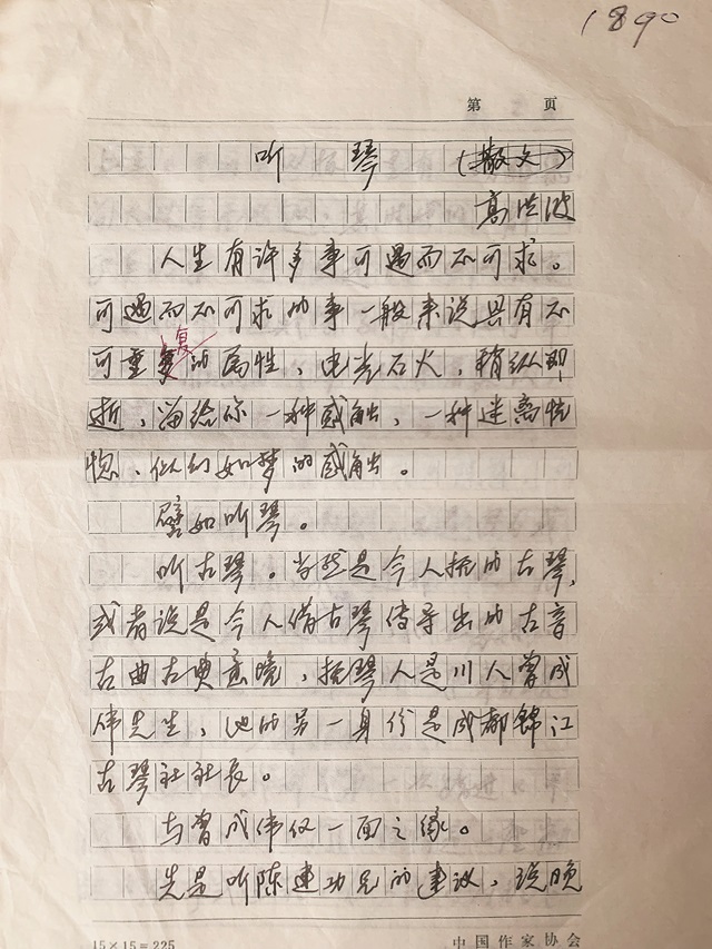 幾年前,我突然接到了曾任《中國(guó)文化報(bào)》副刊主編的王洪波先生的一條短信,王洪波、高洪波,兩個(gè)洪波湊在一起肯定有話說(shuō)。王洪波告訴我,在舊書(shū)交易網(wǎng)站上看見(jiàn)了我的《聽(tīng)琴》9頁(yè)手稿在拍賣,每頁(yè)300塊錢,問(wèn)我要不要買回來(lái)。聽(tīng)到這話,我不禁笑了起來(lái),說(shuō),當(dāng)時(shí)你們給我的稿費(fèi)總共才200塊錢,現(xiàn)在讓我用這么超出底價(jià)的價(jià)格買回我的原稿,敬謝不敏,誰(shuí)愿意買誰(shuí)就買去收藏吧。