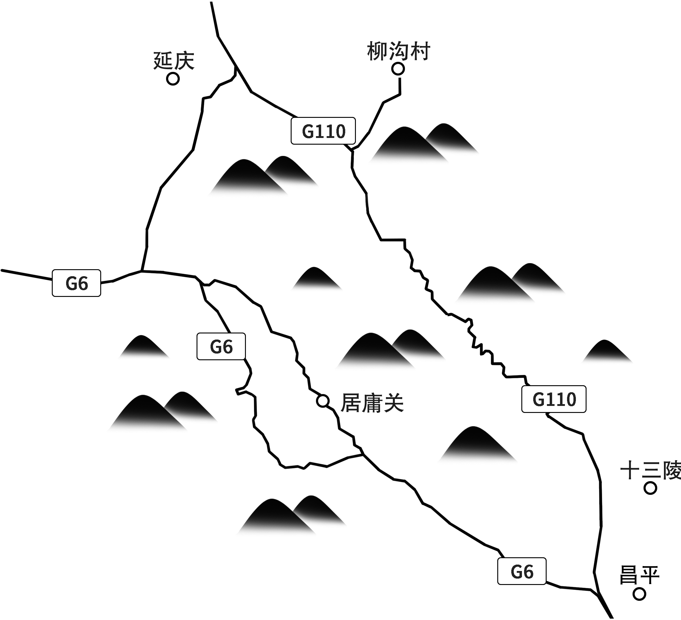 只有通過地圖,或者親自駛過G 110國道,才能理解“寇自柳溝抵居庸關。柳溝天塹,百人可守,竟不設備;總兵唐通、太監(jiān)杜之秩迎降”這句話的真正含義。