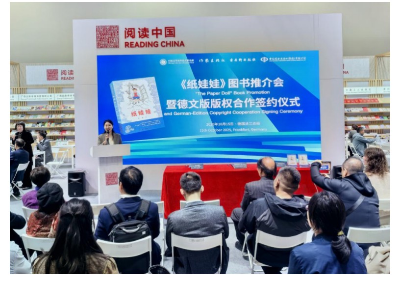 在推介會現(xiàn)場,與會嘉賓圍繞《紙娃娃》的文學價值與教育意義展開深入交流。中圖公司副總經(jīng)理雷建華指出,《紙娃娃》的跨國傳播是將歷史記憶轉(zhuǎn)化為跨越國界的人性教育素材的積極嘗試;德國萊茵出版社社長朱校廷分享了在德國推廣中國故事的經(jīng)驗,指出需結(jié)合當?shù)刈x者閱讀習慣進行本土化改編;旅德作家海嬈探討了文學敘事對修復歷史創(chuàng)傷的作用,認為《紙娃娃》通過童真視角,讓歷史變得更加真實可感;法蘭克福大學博士生艾琳娜則從學術(shù)角度分析了中國文學在德國的接受路徑?;顒悠陂g,各方還完成了德文版版權(quán)合作協(xié)議的簽署工作。