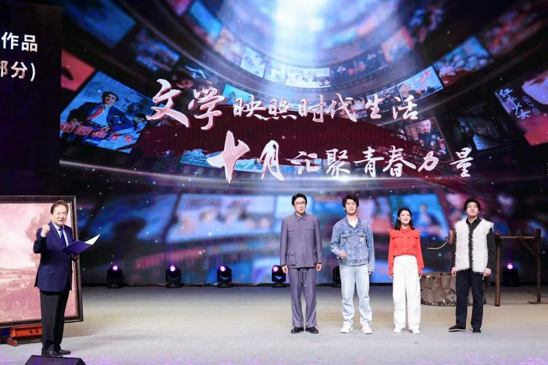開幕式后半段,著名播音藝術(shù)家瞿弦和與青年演員們通過誦讀和演繹《沒有紐扣的紅襯衫》《平凡的世界》《北上》等根據(jù)“十月”文學作品改編的影視作品和原著中的金句,帶領(lǐng)觀眾感受不同年代的青年力量。