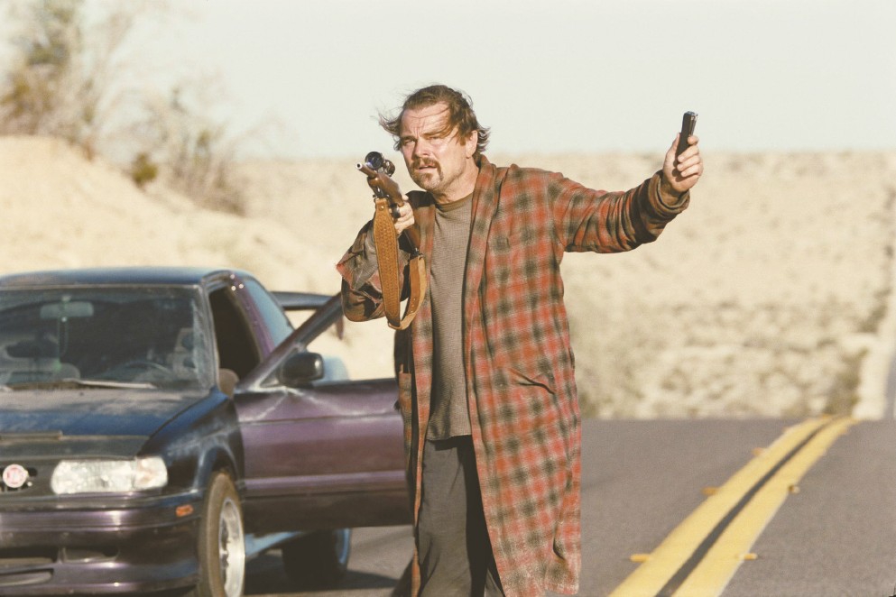 如果說VistaVision是《一戰(zhàn)再戰(zhàn)》的骨架,那么萊昂納多·迪卡普里奧的表演,便是其血肉與靈魂。迪卡普里奧總是在不斷挑戰(zhàn)自我,從《華爾街之狼》的浮夸,到《荒野獵人》的掙扎,他的角色時常烙印著深刻的印記。