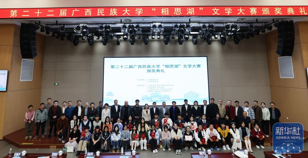 第二十二屆廣西民族大學(xué)“相思湖”文學(xué)大賽頒獎典禮11月2日在相思湖校區(qū)文化研習(xí)基地報告廳舉行。本次活動由廣西民族大學(xué)和廣西作家協(xié)會聯(lián)合主辦,廣西民族大學(xué)文學(xué)影視創(chuàng)作中心、文學(xué)院、廣西現(xiàn)代文學(xué)館、校團(tuán)委共同承辦。