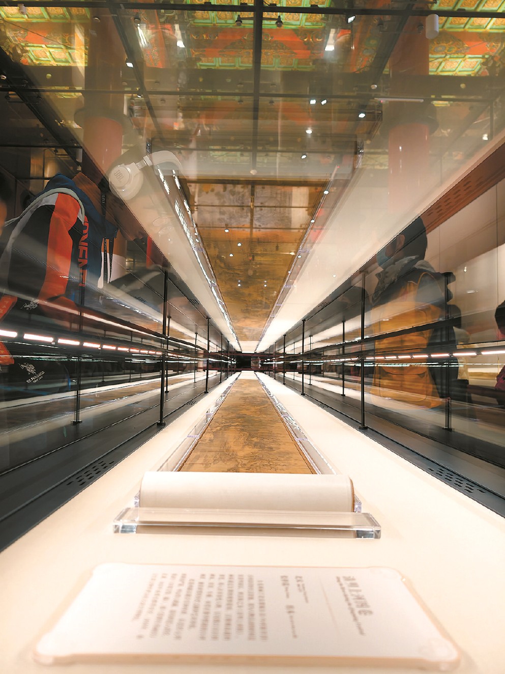 圖為觀眾隔著玻璃展柜競相觀摩限時展出的北宋張擇端《清明上河圖》。(攝影王肇卿)