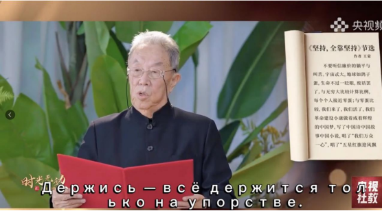 活動(dòng)現(xiàn)場還特別播放了王蒙先生朗誦其作品選段《堅(jiān)持,我們?nèi)繄?jiān)持!》的視頻。視頻中,年逾九旬的王蒙先生依舊精神矍鑠,用慷慨激昂、中氣十足的語調(diào)朗誦到:“我們多么幸福,我們多么精彩,我們?nèi)缛罩刑?,我們繼續(xù)堅(jiān)持,我們?cè)賵?jiān)持奮斗百年千載不停息!”。激昂的文字與真摯的情感感染了在場的年輕讀者,現(xiàn)場響起了經(jīng)久不息的掌聲。