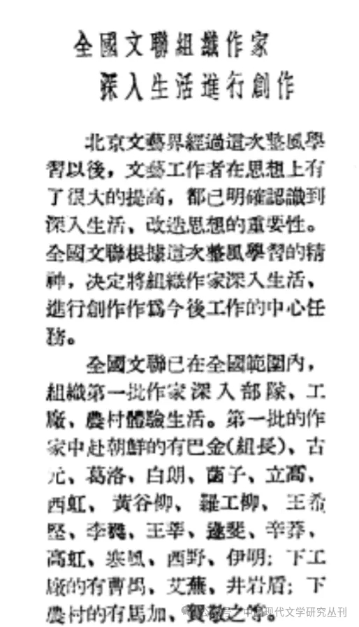 《全國(guó)文聯(lián)組織作家深入生活進(jìn)行創(chuàng)作》,《文藝報(bào)》1952年第5號(hào)