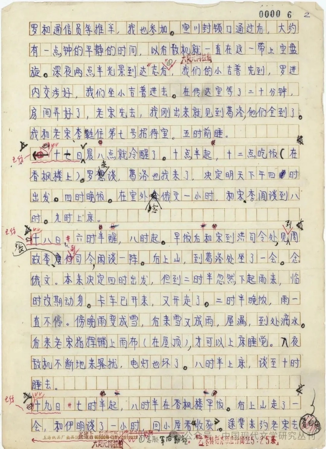 巴金《赴朝日記》1952年7月2日日記手稿及抄稿
