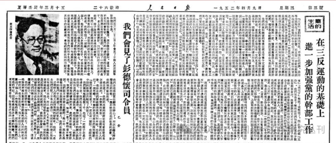 巴金 《我們會(huì)見(jiàn)了彭德懷司令員》,《人民日?qǐng)?bào)》1952年4月9日