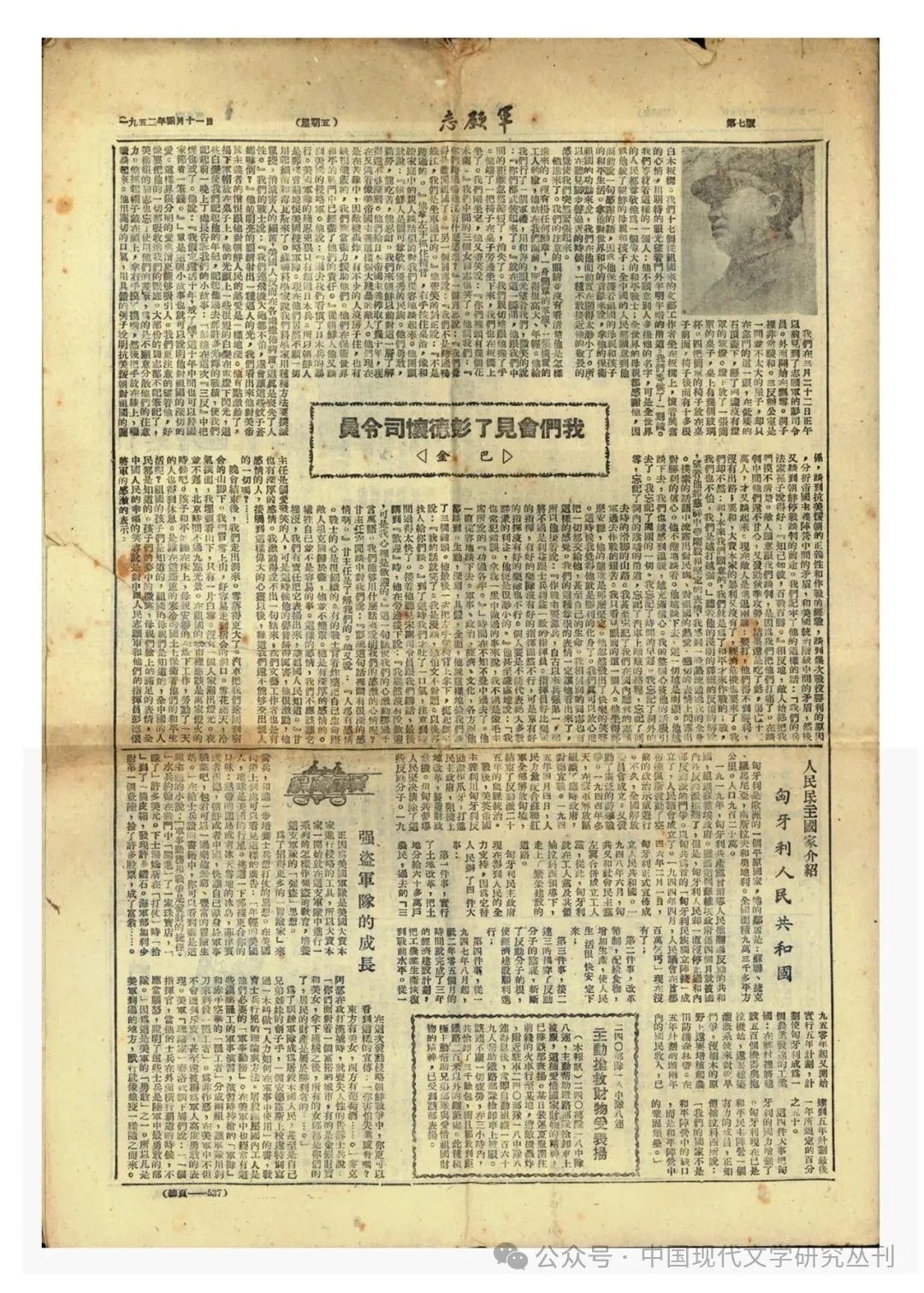 巴金 《我們會(huì)見(jiàn)了彭德懷司令員》,《志愿軍》報(bào)1952年4月11日
