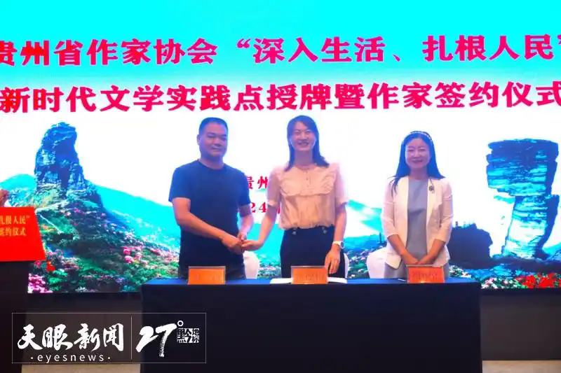 在貴州作家“深入生活、扎根人民”新時代文學(xué)實踐點授牌儀式上,貴州省作家協(xié)會分別與遵義、畢節(jié)、黔南、銅仁4個實踐點所在地文聯(lián)進行簽約,與遵義、畢節(jié)、黔南的3位作家進行簽約。貴州省文聯(lián)主席、省作協(xié)主席歐陽黔森說,設(shè)立新時代文學(xué)實踐點,是貴州文學(xué)界傳播貴州優(yōu)秀文化、服務(wù)經(jīng)濟社會發(fā)展大局的一項重要舉措,旨在出人才、出精品,讓新時代的文學(xué)種子在貴州廣袤大地上生根發(fā)芽、開花結(jié)果。