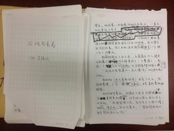 馬振騁翻譯《蒙田隨筆全集》全憑手寫(xiě),因?yàn)樗粫?huì)使用電腦打字。近2000頁(yè)的作文稿紙上,滿眼是不斷修改后留下的痕跡。馬振騁說(shuō),“我對(duì)自己的譯文還是滿意的,我想這樣一部書(shū),在今后五年、十年也不會(huì)再有人去重譯了,畢竟這是件吃力不討好的事情,我是真的喜歡蒙田?!?/p>