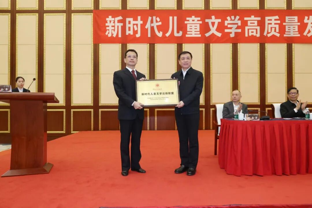 座談會(huì)上舉行了中國(guó)作家協(xié)會(huì)新時(shí)代兒童文學(xué)出版聯(lián)盟成立儀式,張宏森為聯(lián)盟授牌,聯(lián)盟理事長(zhǎng)單位代表、中國(guó)少年兒童新聞出版總社黨委書(shū)記、董事長(zhǎng)曾銳接牌,并宣讀聯(lián)盟倡議書(shū)。