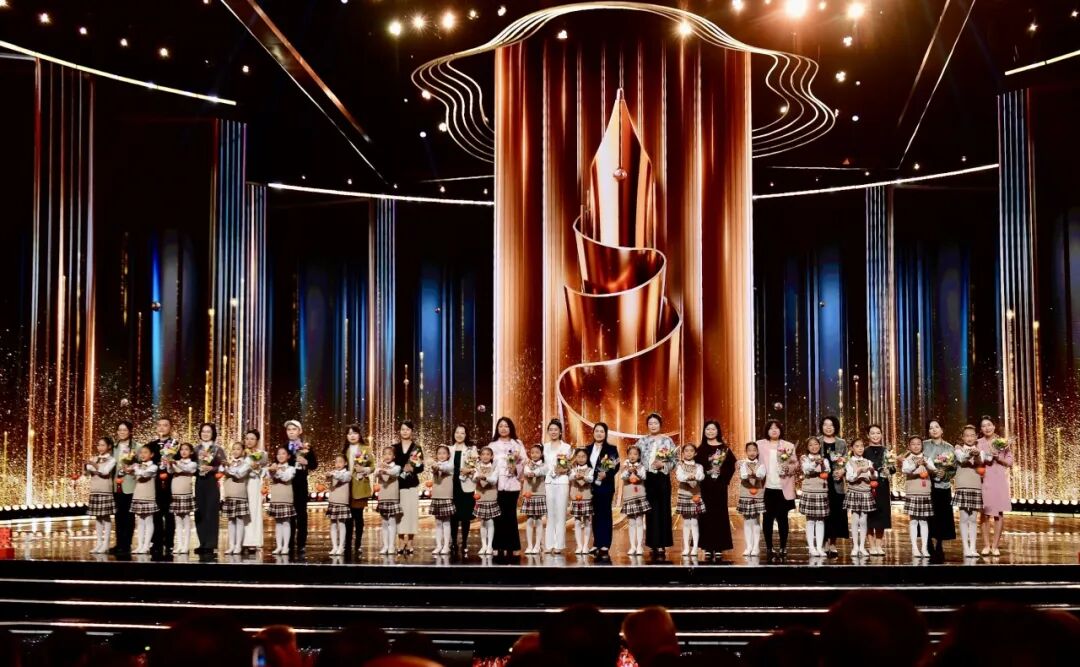 本次盛典將莊重典雅的文學頒獎典禮與氣氛熱烈、傳播力強的電視晚會和網(wǎng)絡平臺直播深度融合,精選兒童文學相關內(nèi)容進行創(chuàng)意編排,以靈動活潑、隆重豐富的節(jié)目形態(tài),生動展現(xiàn)兒童文學的獨特魅力,深情表達兒童文學作家對美好純真童年的溫暖呵護,引導廣大少年兒童在文學閱讀中收獲真善美,獲得健康成長的堅實力量。開場秀《造夢家》帶領觀眾闖入書本中的奇幻世界,兒歌連連唱《聽媽媽講那過去的事情》喚起全民童年記憶,創(chuàng)意音樂秀《陪我長大的朋友》重現(xiàn)黑貓警長、哪吒、孫悟空、雪孩子等經(jīng)典角色,舞蹈《瓷影》展現(xiàn)中華文明的傳承創(chuàng)新,歌曲《用盡我的一切奔向你》《最好的未來》深情傳遞愛與希望的力量。現(xiàn)場還播放了《清溪漫記:一堂特別的讀書會》視頻短片,生動記錄了兒童文學作家金波與小朋友們的交流互動;播放短片《全世界書迷的告白》,特別向兒童文學作家曹文軒致敬;播放以蔡皋、祁智、蔡崇達為主角的短片,以影像方式展現(xiàn)作家作品背后的感人故事。來自中國作協(xié)定點幫扶縣甘肅省臨潭縣的6名小朋友也來到盛典現(xiàn)場,與大家共同見證屬于兒童文學的閃爍星光。
