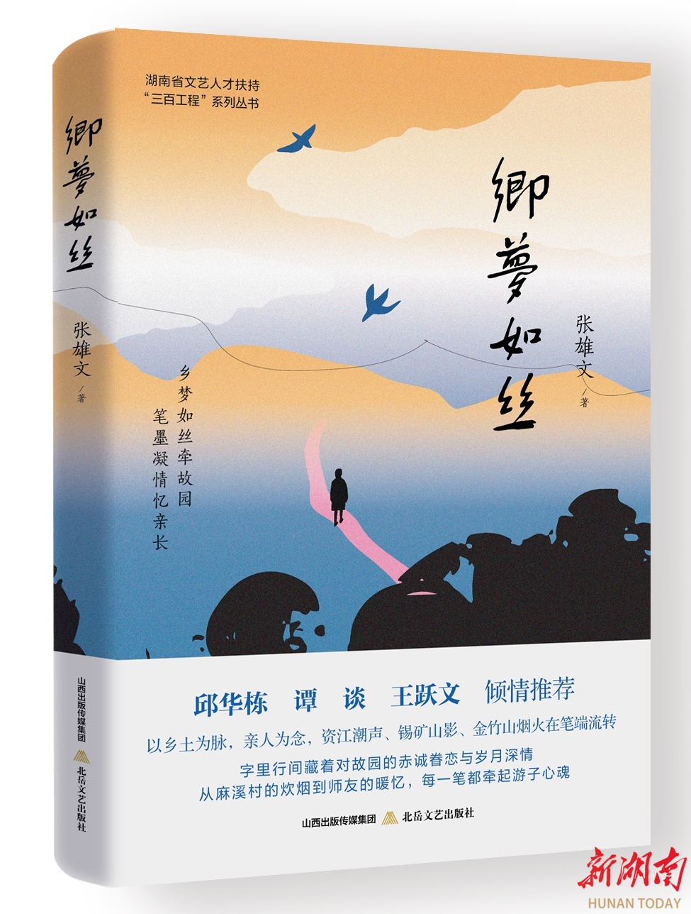 近日,張雄文新書(shū)《鄉(xiāng)夢(mèng)如絲》由北岳文藝出版社正式出版發(fā)行。該書(shū)為作者最新散文集,系湖南省文藝人才扶持“三百工程”入選作品。全書(shū)凝眸老去的時(shí)光深處,以鄉(xiāng)土與親人為主線,或回望故園,或感懷雙親,或憶念師友。字里行間藏著對(duì)故園的赤誠(chéng)眷戀與歲月深情。作者文風(fēng)或如山間小道素樸清新,或如萬(wàn)頃汪洋浩瀚恣肆,筆力遒勁而老到,思慮沉郁而睿智。中國(guó)作協(xié)黨組成員、書(shū)記處書(shū)記、副主席邱華棟、中國(guó)作協(xié)原副主席譚談、中國(guó)作協(xié)主席團(tuán)委員、湖南省作協(xié)原主席王躍文傾情推薦。譚談并撰寫(xiě)序言,王躍文并題寫(xiě)書(shū)名。