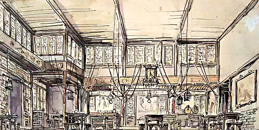 ③《茶館》第一幕舞美效果圖