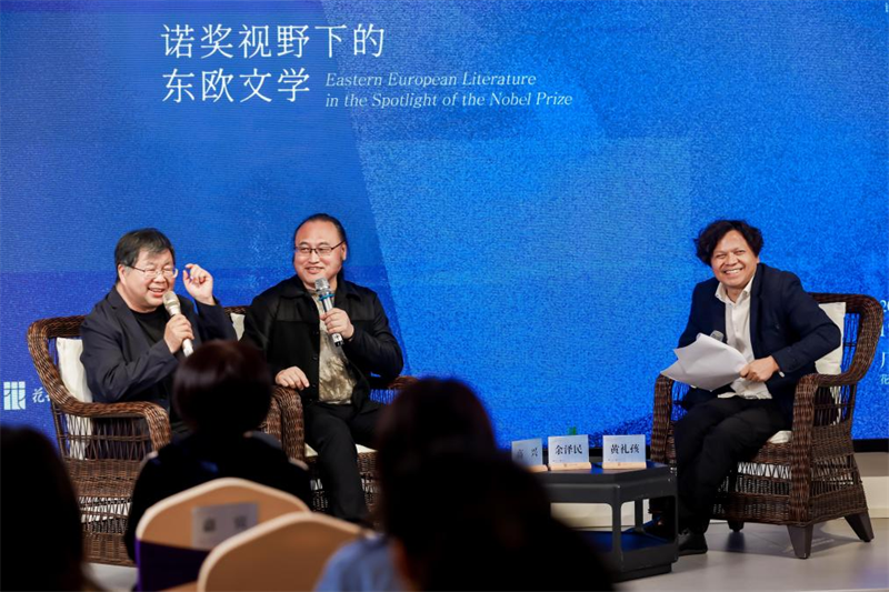 本次活動以花城出版社持續(xù)耕耘的“藍色東歐譯叢”為脈絡(luò),邀請該叢書主編、《世界文學(xué)》原主編高興,作家、翻譯家余澤民,以及詩人、藝術(shù)策展人黃禮孩作為對談嘉賓。三人圍繞2025年諾貝爾文學(xué)獎得主、匈牙利作家克拉斯諾霍爾卡伊·拉斯洛的獲獎,引領(lǐng)讀者深入東歐文學(xué)的精神腹地,展開一場關(guān)于歷史、語言與文明互鑒的深度對話。