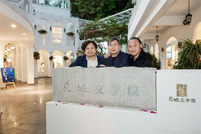高興、余澤民、黃禮孩在花城文學(xué)院合影