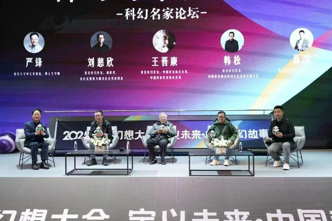 在復(fù)旦大學(xué)嚴(yán)鋒教授的主持下,劉慈欣、王晉康、韓松、海漄四位科幻名家圍繞“科幻與中國故事”展開對談。