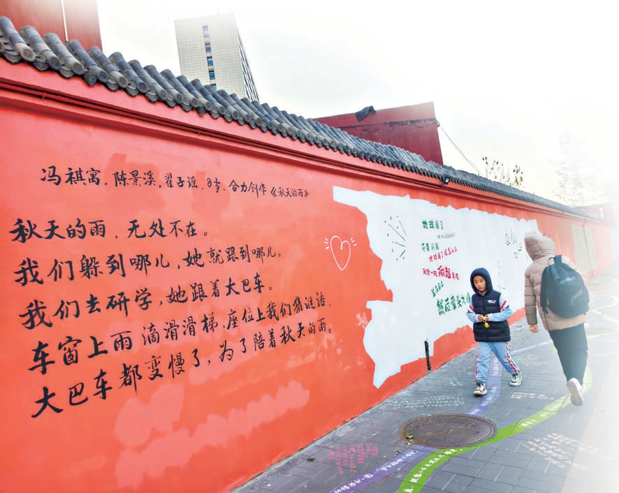 落葉與詩(shī)句一起被秋風(fēng)“投遞” 孩子們的想象刻進(jìn)了街巷
