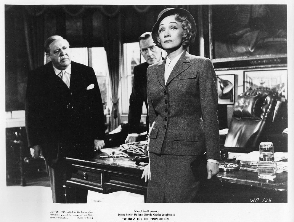 換言之,燒腦和懸疑是這部電影眾多優(yōu)點(diǎn)里最不值一提的一面。要求劇組、演員和先睹的觀眾們“嚴(yán)禁劇透”,這是流淌著黑色幽默血液的懷爾德導(dǎo)演有意為之的一場(chǎng)“表演”。而“表演”正是《控方證人》的靈魂所在,不僅查爾斯·勞頓、瑪琳·黛德麗這群主演留下了被載入電影史的表演,并且,電影在室內(nèi)劇的框架里創(chuàng)造“元表演”的現(xiàn)場(chǎng),懸疑劇情的盡頭是每個(gè)人如何利用各自的身份進(jìn)行接二連三的“表演”。