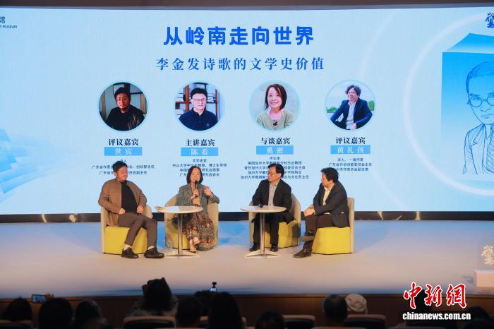當(dāng)天下午,廣東文學(xué)館舉行了主題為《從嶺南走向世界:李金發(fā)詩歌的文學(xué)史價(jià)值》的鵝潭大講堂活動,主講嘉賓陳希、與談嘉賓奚密、評議嘉賓詩人世賓、黃禮孩,圍繞李金發(fā)詩歌的內(nèi)涵價(jià)值、國內(nèi)外李金發(fā)詩歌研究的成果以及李金發(fā)詩歌對當(dāng)下詩歌創(chuàng)作的意義進(jìn)行了探討和交流。